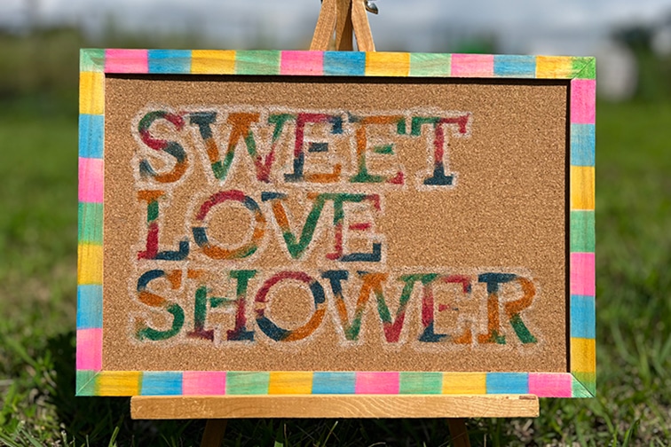 SWEET LOVE SHOWERオリジナル絵の具バナー。まっ白なキャンパスの上で豪快に絵具を塗ってみよう!色々な絵の具が混ざり色の変化を楽しんだり、自分の好きな絵を描いてみたり、楽しみ方は無限大。どんな作品が出来るかは最後までわかりません。ドキドキワクワクしながら思いっきり楽しんでみよう♪