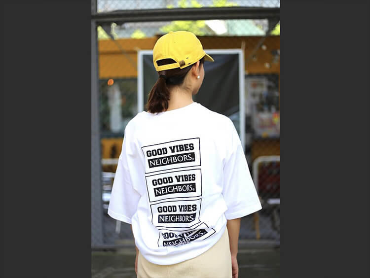 Tシャツ、CAP、サコッシュやタトゥーシールなど遊びが効いたデザインのアイテムが並びます。カラビンカさんの美味しいごはん屋さんの隣にて営業中なので、お気軽に遊びにいらして下さい。