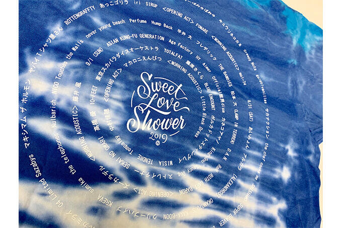 「サインペインティング」によってデザインされたイベント名がタイダイとマッチした素敵なアイテムです。