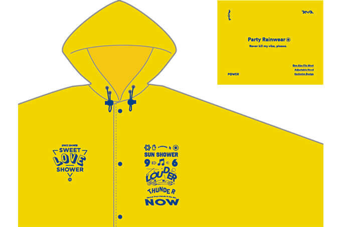 胸元と背面に施したシュールなデザインが特徴の、防水素材で雨からしっかり守ってくれる、耐水性も高いポンチョ。 突然の雨に降られても、これを着れば気持ちは晴れ続けるでしょう! 一見難解かつポップなデザインも、ラブシャマニアやスペシャっ子のあなたならピンとくるかも...!?