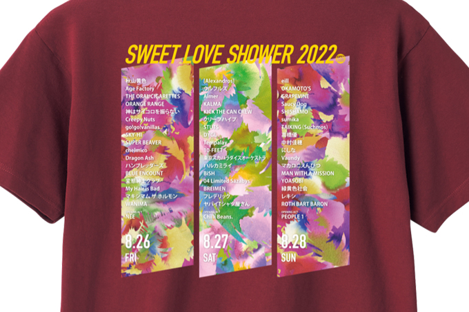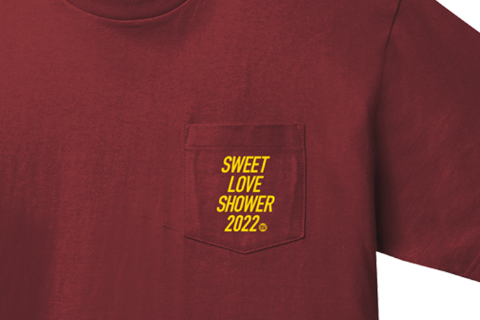 今年のメインビジュアルのモチーフ、カラフルな羽をコラージュしたグラフィックを背面にプリントしたポケットTシャツです。