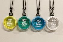PVC素材を使用した清涼感のある丸型ポーチです。