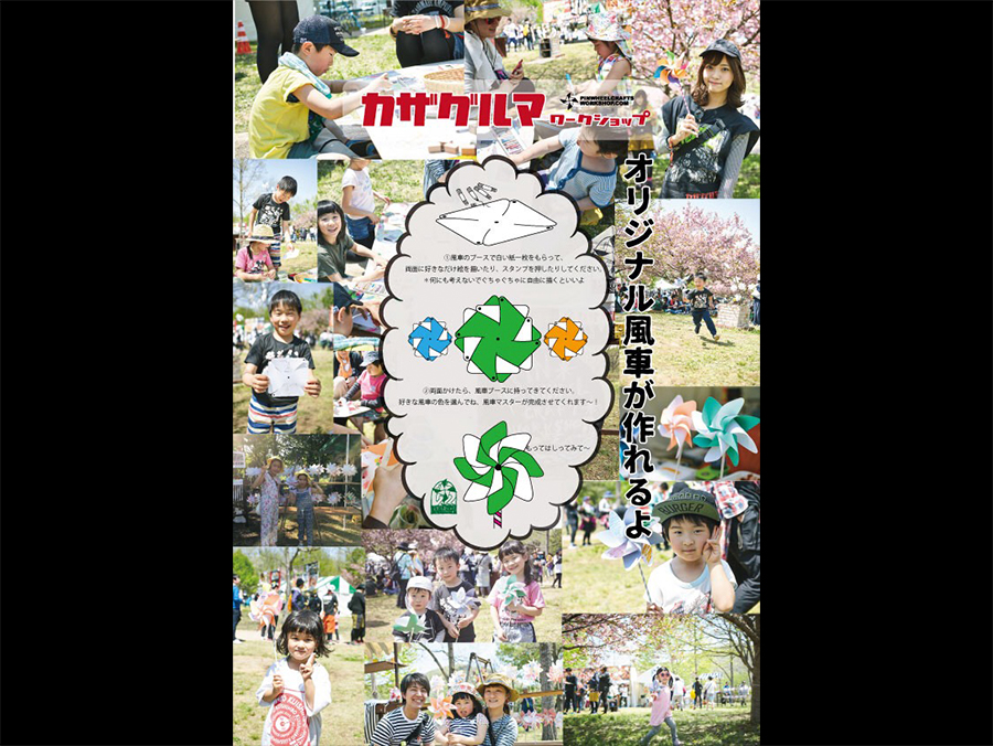 風車の羽根に好きな絵を描いたり、スタンプを押したりしてオリジナルの風車が作れます。フェスティバルの風景を風車で彩ってもうひとつアクセントを加えてみてください。きっと素敵な空間になるはずです。