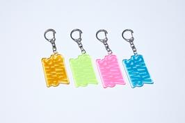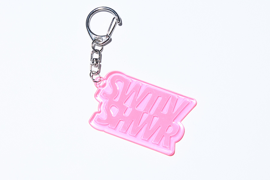 ビタミンカラーのロゴキーホルダー。リフレクター素材なので暗闇で光るに当たると反射します。夜道の安全対策にも。
