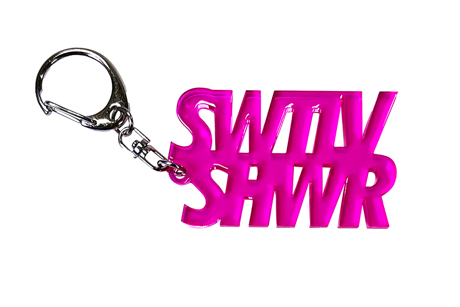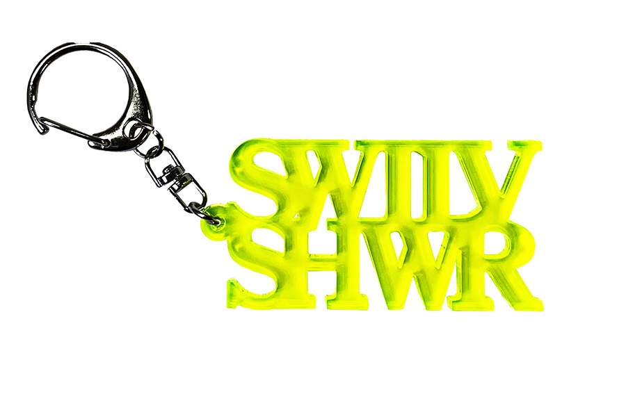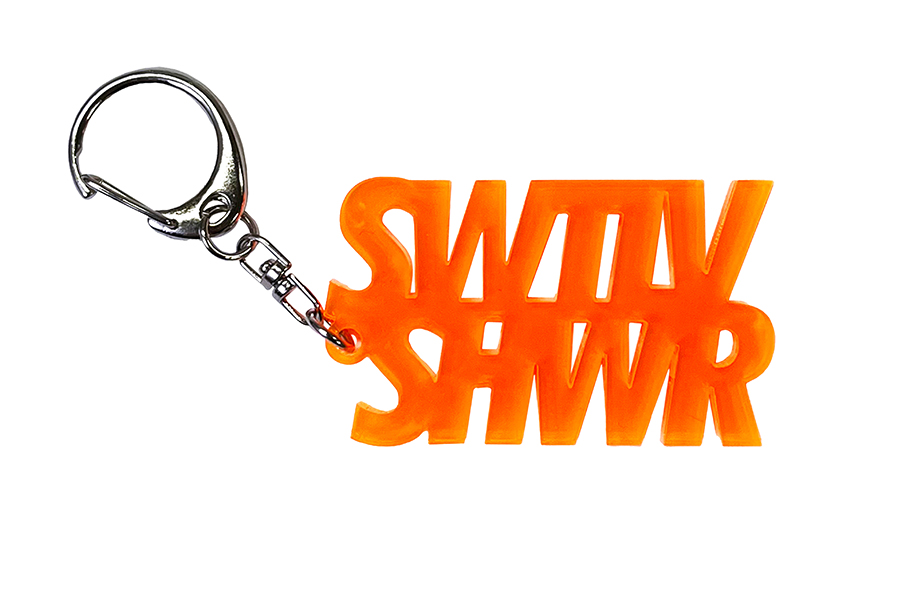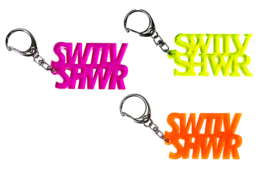 ビタミンカラーのアクリルを使ったロゴキーホルダー。